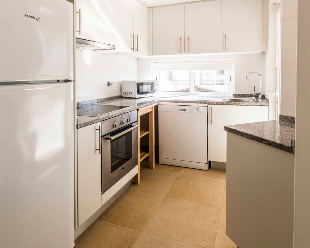 - cozinha equipada com frigorífico, forno e placa de fogão de 4 bicos, máquina de lavar loiça, micro-ondas, chaleira elétrica, torradeira, utensílios de cozinha básicos, pratos, copos e talheres;